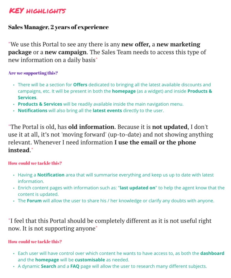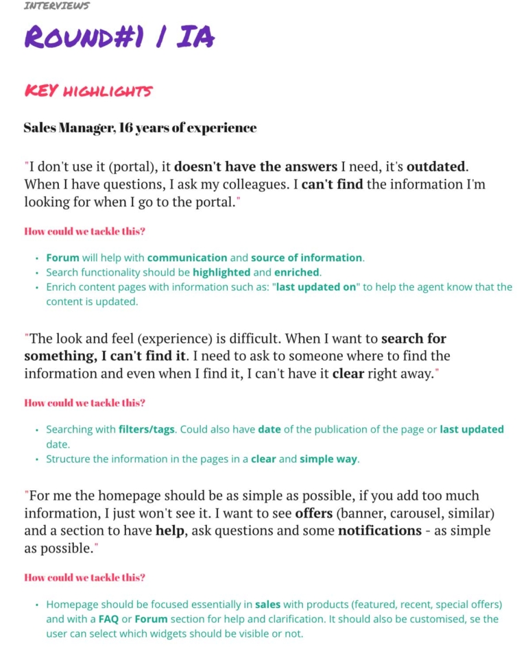 On top of this, we were not getting the full context of usage, for distance or cultural reasons. For this reason we requested and did several walkthrough sessions, so we could see the live portal. Besides this, to understand the usage from a user’s perspective , we conducted 5 user interviews.